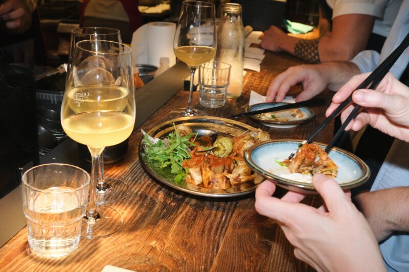 Im Meinklang Hofladen lud Milan Gataric (LUX, Rotterdam) gleich zu zwei kulinarischen Begegnungen – einem East Meets West Bistro Supper und dem gemütlichen Breakfast Club. Parallel dazu begeisterte TABLEAU – Markt für Küche & Tischkultur im MAK Tableware- und Designliebhaber*innen, während im Funkhaus die Freie Kiosk Kultur und Estúdio Schumi zum Slovenian Heuriger lud – samt Naturwein von Santei Winery, Desserts von torte0.0 und Keramik von TAMO.
