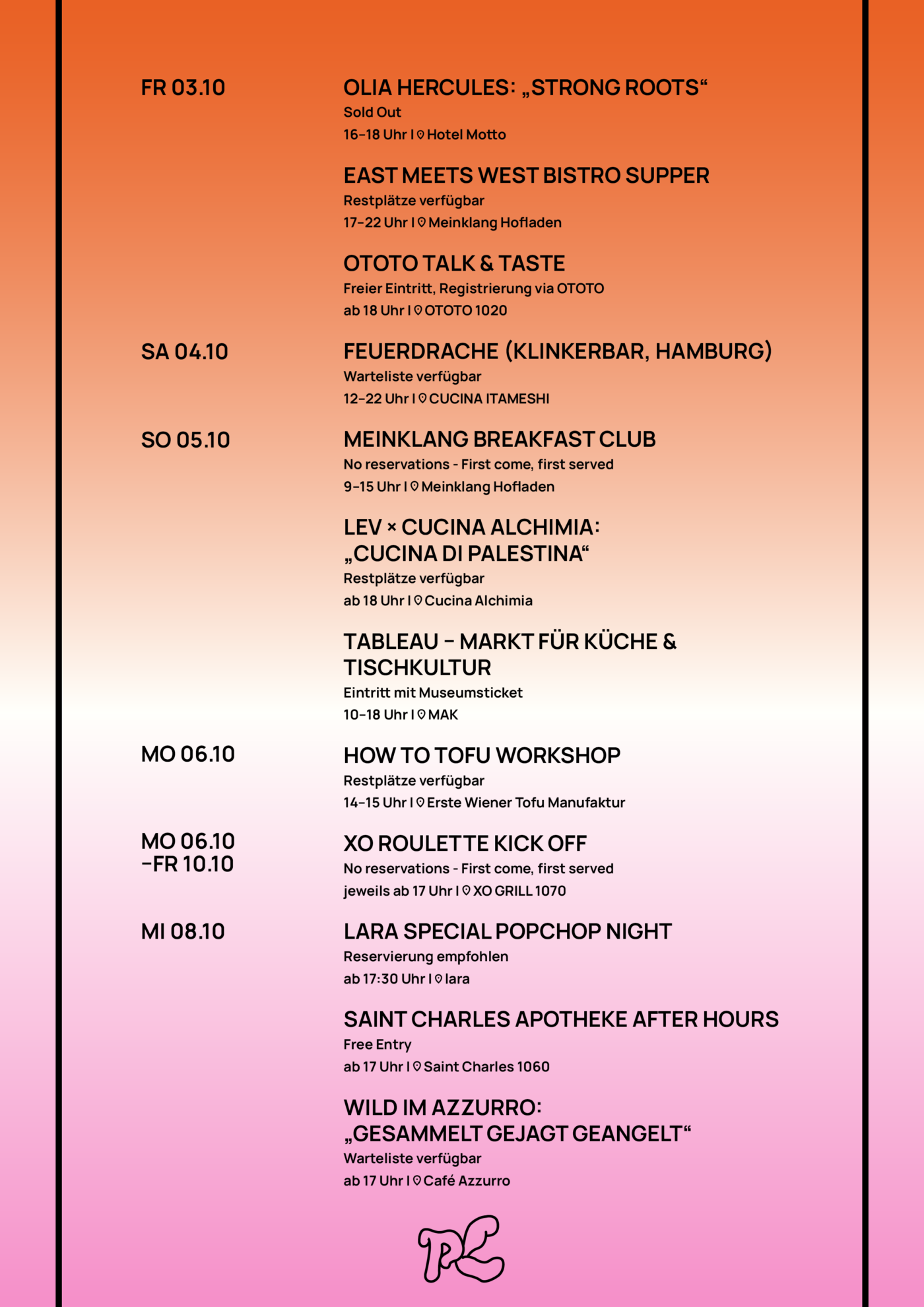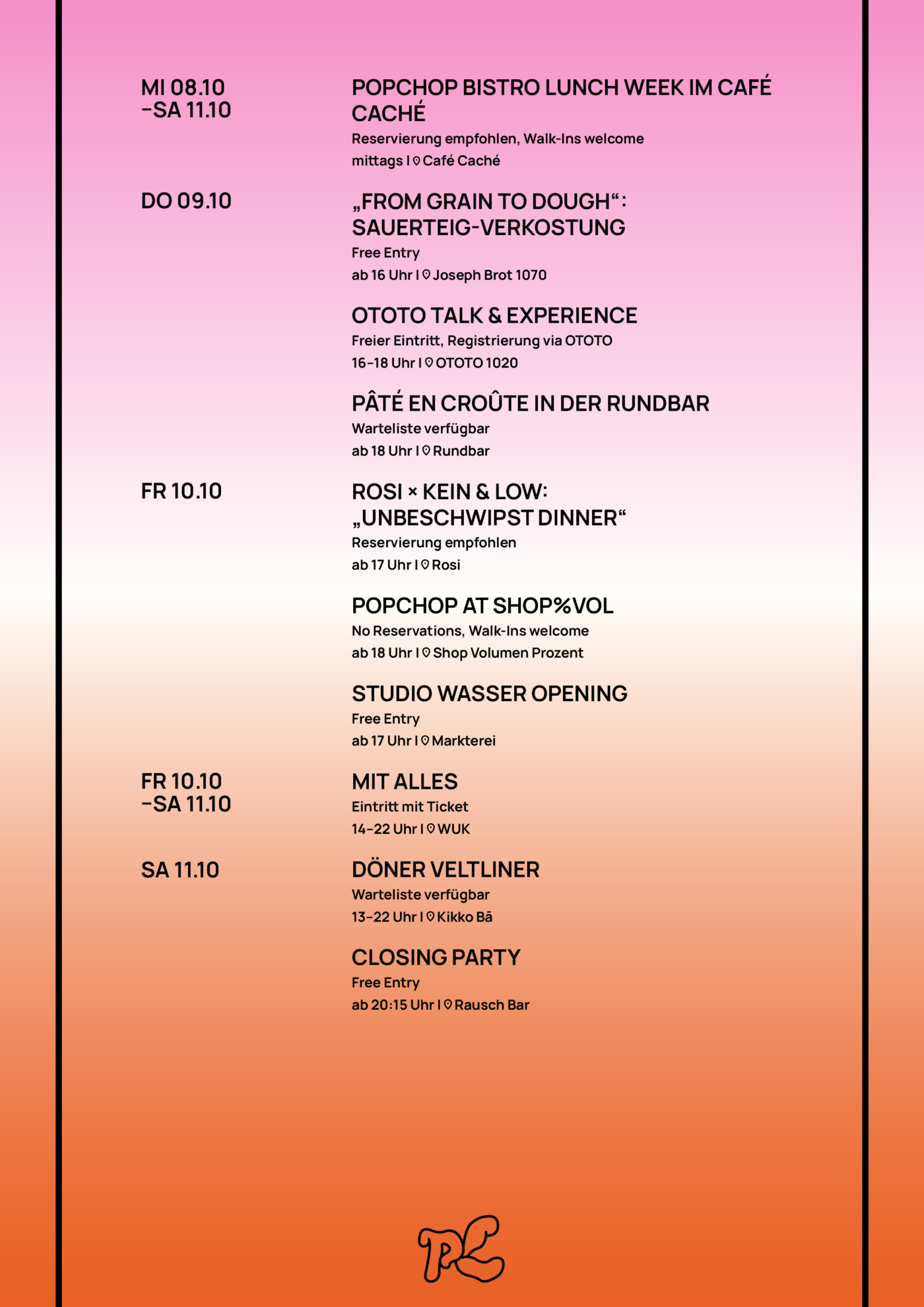 Nur noch wenige Stunden und dann ist es soweit: Die Popchop Future Food Week startet und wir freuen uns sehr auf euer Kommen. Damit ihr nichts verpasst haben wir euch hier nochmal alle Events, Uhrzeiten, Ticket links und Infos zusammen gepackt.
